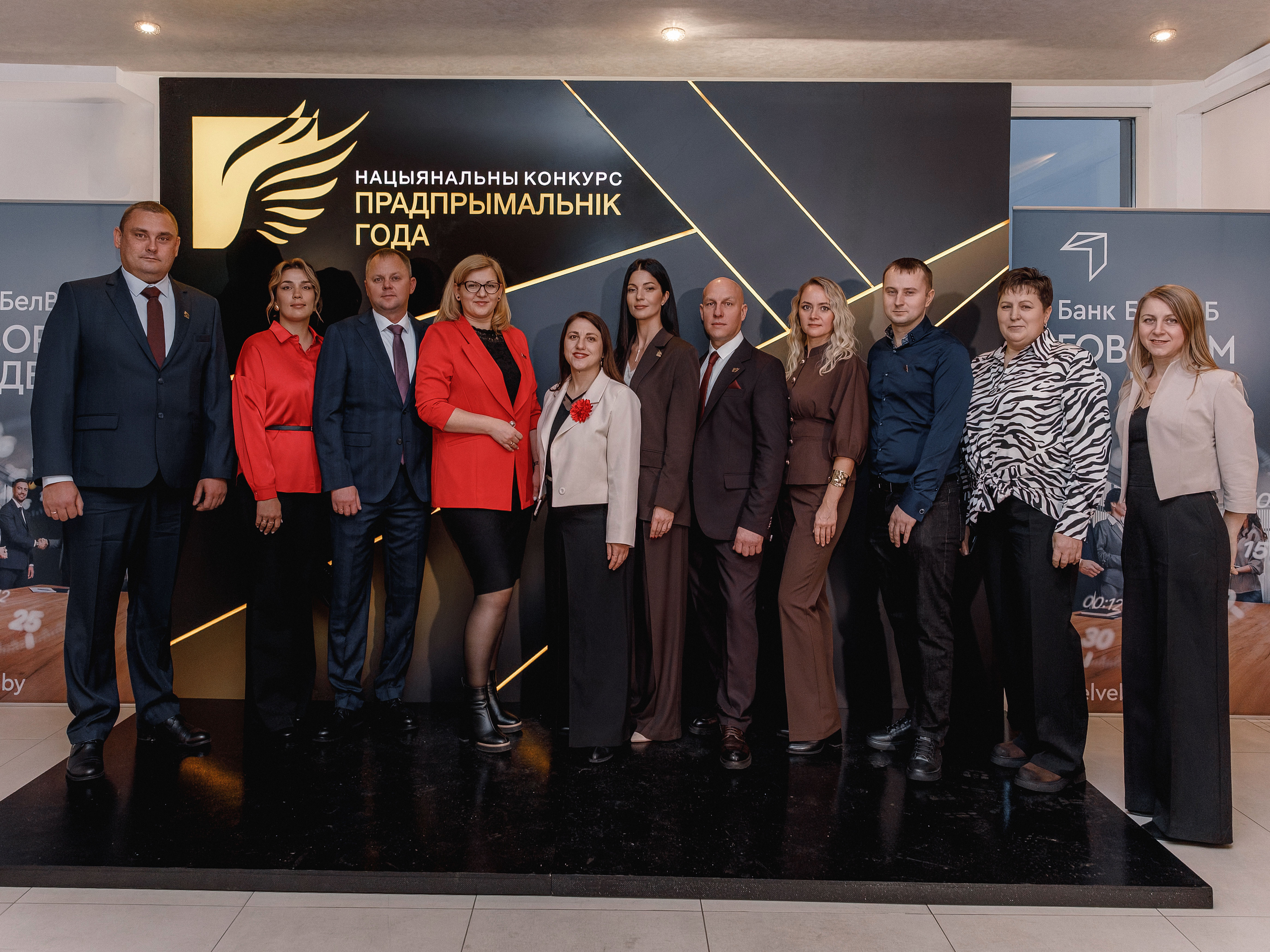 Первый заместитель Председателя Правления Национального банка Республики Беларусь Тарас Юрьевич Надольный и и победители Национального конкурса Предприниматель года 2017 года в номинации «Эффективный бизнес в сфере услуг».