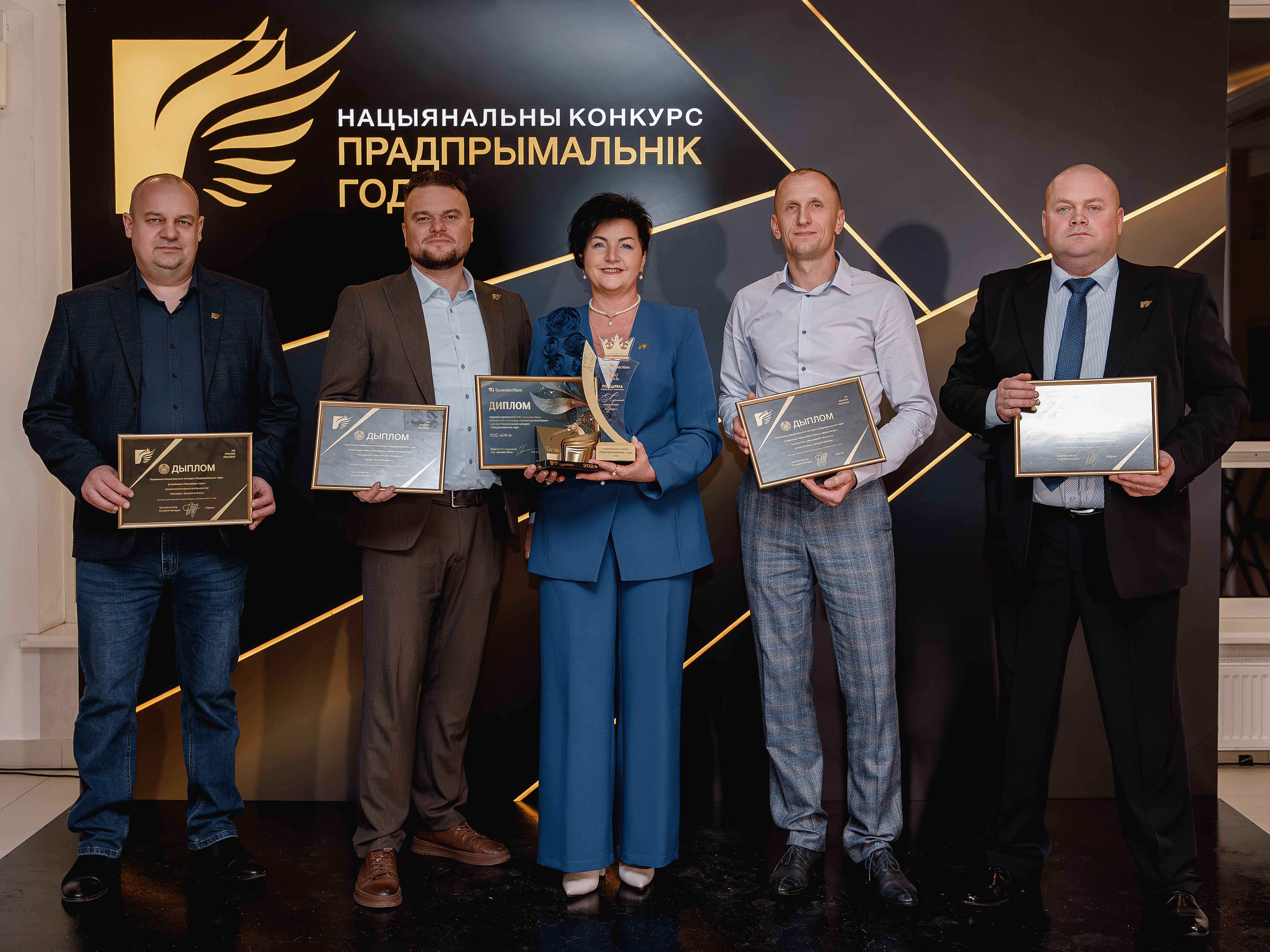 Заместитель председателя Совета по развитию предпринимательства Павел Георгиевич Топузидис и победители Национального конкурса Предприниматель года 2016 и 2017 года, награжденные дипломами ”Ганаровы прадпрымальнiк“.