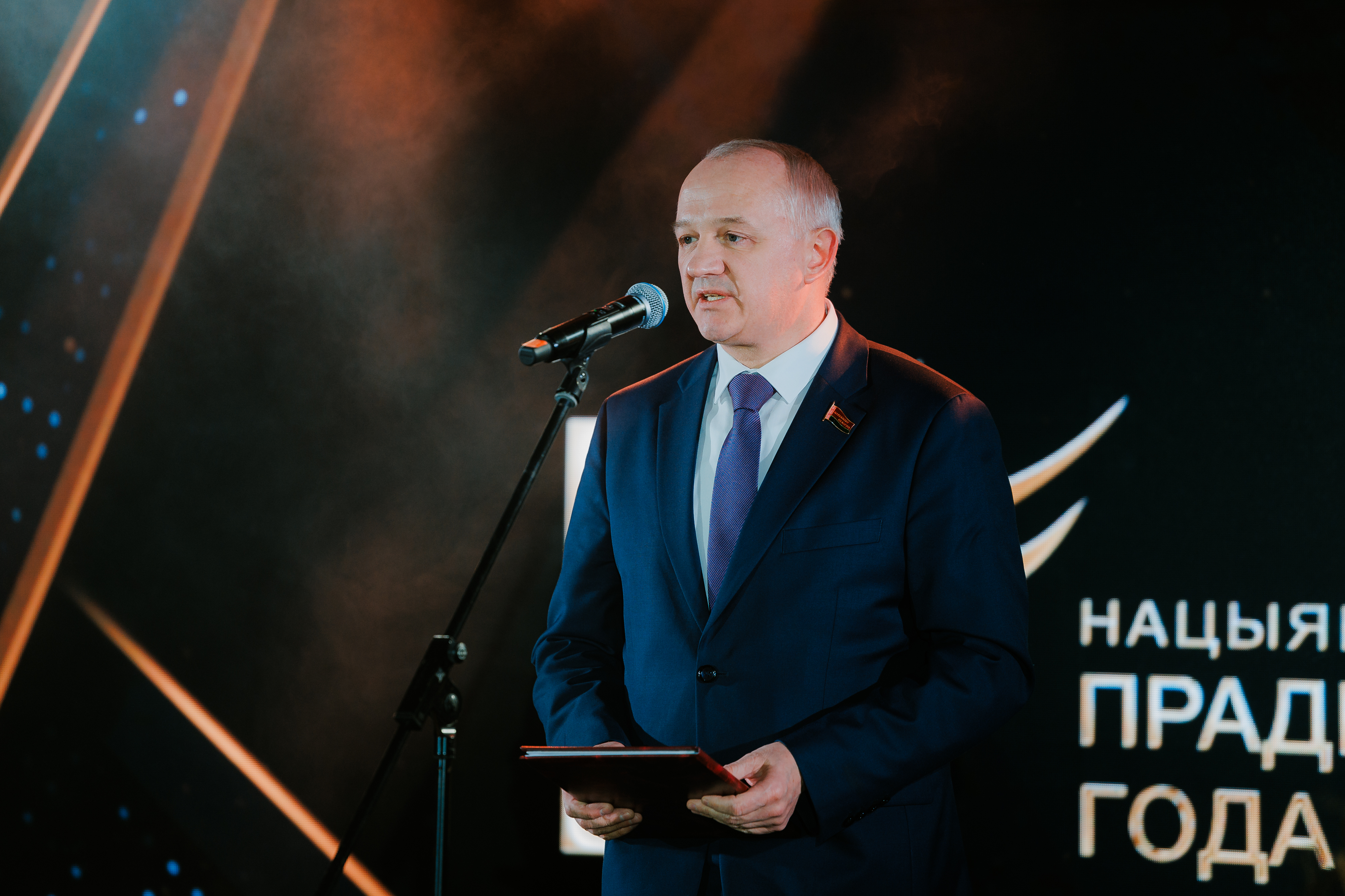 Заместитель председателя Палаты представителей Национального собрания Республики Беларусь Болеслав Казимирович Пирштук и победители Национального конкурса Предприниматель года 2017 года в номинации «Эффективный бизнес в сфере производства».