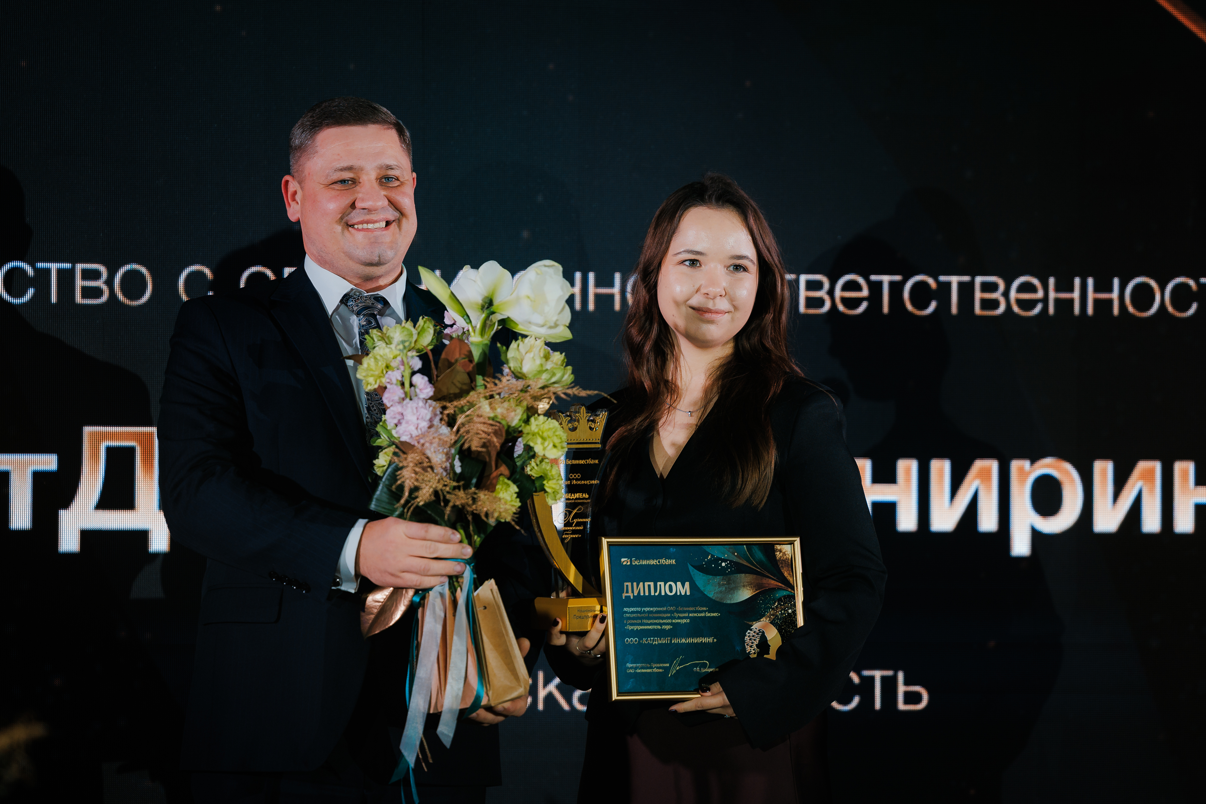 Кобяков Андрей Владимирович вручает награду победителям конкурса "Лучший предприниматель - 2016"